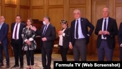 სასახლეში იმყოფებიან და შარლ მიშელის განახლებულ დოკუმენტს დოკუმენტს ხელს აწერენ „გირჩიდან“ ვახტანგ მეგრელიშვილი, „მოქალაქეებიდან“ ალეკო ელისაშვილი, „სტრატეგია აღმაშენებლიდან“ გიორგი ვაშაძე, „გირჩი-მეტი თავისუფლებიდან“ ზურაბ ჯაფარიძე, „ევროპული საქართველოს" ყოფილი თავმჯდომარე დავით ბაქრაძე, „რესპუბლიკელების“ თავმჯდომარე ხათუნა სამნიძე, „ლელოდან“ მამუკა ხაზარაძე და ბადრი ჯაფარიძე.