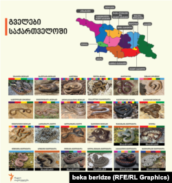 სულ საქართველოში 24 სახეობის გველია, მათგან 8 შხამიანი გველგესლა, რომელთაგან სიცოცხლისთვის სახიფათოა გიურზა, ის ძირითადად კახეთის რეგიონში, ქვემო ქართლსა და თბილისის სამხრეთ-აღმოსავლეთით მდებარე ფერდობებსა და ველებზე გვხვდება. ამ რუკაზე საქართველოში ბინადარ გველებს შეხვდებით.