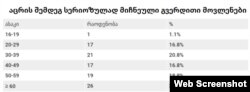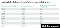 ასაკობრივი ჯგუფების მიხედვით, პროცენტულად ყველაზე დიდი წილი 70-74 წლის ადამიანებზე მოდის (12,9 %).