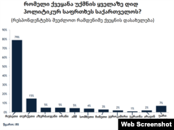 ორგანიზაცია დაინტერესდა, რომელ ქვეყნებს მიიჩნევს საქართველოს მოსახლეობა საქართველოსთვის ყველაზე მნიშვნელოვან პოლიტიკურ პარტნიორად. ამ შემთხვევაში ლიდერობს აშშ, რომელსაც მოჰყვება ევროკავშირი, უკრაინა და აზერბაიჯანი. მეზობელ ქვეყნებს შორის რუსეთს უფრო უკეთეს პარტნიორად მიიჩნევენ, ვიდრე თურქეთს და სომხეთს.