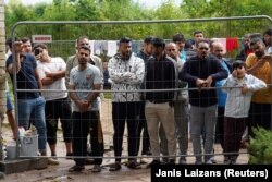 ზღუდესთან შეკრებილნი მიგრანტები დროებითი დაკავების ცენტრში კაზიტისკისში, ლიეტუვაში, 12 აგვისტოს. ჩიხური ვითარება პოლონეთ-ბელარუსის საზღვარზე მოჰყვა ლიეტუვას გადაწყვეტილებას აგვისტოს დასაწყისში - ფიზიკურად აეძულებინათ მიგრანტები დაბრუნებულიყვნენ ბელარუსში მას შემდეგ, რაც წელს 4000-ზე მეტი მათგანი არალეგალურად შევიდა ბალტიის ამ ქვეყანაში ბელარუსიდან რამდენიმე თვის განმავლობაში.