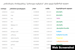 ჯამში 22 კომპანიიდან არცერთს ამ დრომდე “ქართული ოცნებისთვის”, ან სხვა პარტიებისთვის თანხა არასდროს გადაურიცხავს.