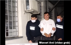 მედიამ გადაიღო, როგორ ესალმება მიხეილ სააკაშვილი რუსთავის მე-12 პენიტენციური დაწესებულებიდან შენობის გარეთ შეკრებილ მის მხარდამჭერებს.