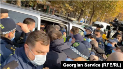 პოლიცია სუს-ის შენობასთან აქციის მონაწილეებს აკავებს