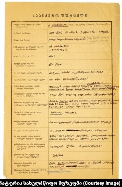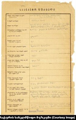 ეს არის ნაწყვეტი მწერლის მიერ შევსებული ანკეტიდან და იგი იმ საარქივო მასალის ნაწილია, რომელიც სულ ახლახან შეემატა საქართველოს ლიტერატურის მუზეუმის კოლექციას.