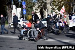 50-მდე ეტლით მოსარგებლე, უსინათლო და სხვა შეზღუდული შესაძლებლობების მქონე პირი დილით ვარდების რევოლუციის მოედანზე შეიკრიბა და პარლამენტისკენ დაიძრა.