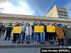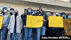 "რა ხდება მაშინ, როცა კარი დახურულია?" "არა მილიციას!" - ეს წარწერები მიიტანეს აქტივისტებმა შსს-სთან.