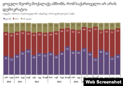"ეროვნულ-დემოკრატიულმა ინსტიტუტმა" დემოკრატიასთან დაკავშირებით გამოკითხული მოსახლეობის პასუხები პარტიული მხარდაჭერის მიხედვით დაყო. აღმოჩნდა, რომ მმართველი პარტიის მხარდამჭერებისთვის საქართველოში დემოკრატიაა, დანარჩენი მოსახლეობა კი ამას არ იზიარებს.
