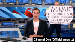 14 მარტს, ღამით, როცა რუსეთის პირველი არხის პირდაპირ ეთერში გადიოდა პროპაგანდისტული საინფორმაციო პროგრამა „ვრემია“ და წამყვანი ეკატერინა ანდრეევა რუსეთის საწინააღმდეგო სანქციებზე ლაპარაკობდა, მარინა ოვსიანნიკოვა სტუდიაში პლაკატით შევიდა. პლაკატზე ეწერა: „შეაჩერეთ ომი. არ დაუჯეროთ პროპაგანდას. აქ თქვენ გატყუებენ“. ოვსიანნიკოვამ პირდაპირ ეთერში წარმოთქვა მოწოდებაც: "შეაჩერეთ ომი! არა ომს!"