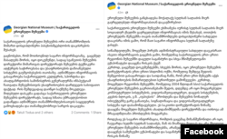 ეროვნული მუზეუმის ფეისბუკის გვერდზე დღეს ამ თემაზე ორი პოსტი გამოქვეყნდა: ერთი, რომელიც სამინისტროდან გამოგზავნილი ტექსტის მუზეუმის თანამშრომლების მიერ ადაპტირებული ვერსიაა და სადაც სულხან სალაძე დასახელებული არ იყო, გამოქვეყნებიდან 1 საათში წაიშალა და მალევე დაიდო მეორე, უფრო ვრცელი ტექსტი.