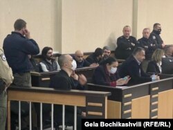 იქვე იყვნენ შეკრებილი ჟურნალისტები, რომლებიც კოლეგების სოლიდარობის ნიშნად მართავდნენ აქციას, და ბრალდებულების ახლობლები და მხარდამჭერებიც.