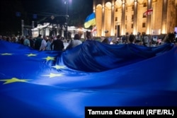 “ევ-რო-პა, ევ-რო-პა..” - სკანდირებენ ბავშვები პარლამენტის წინ, 3 ივლისის აქციაზე. ცეკვავენ და თან ევროკავშირისა და საქართველოს დროშებს აფრიალებენ. გუშინ ლურჯი ვარსკვლავებიანი დროშა ანტიდასავლურმა, ჰომოფობიურმა ჯგუფებმა დაწვეს და ზედ მიაფურთხეს კიდეც, დღეს შეკრებილი ხალხისთვის კი ის თავისუფლებისა და კეთილდღეობის სიმბოლოა.