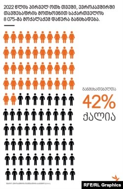 2022 წლის პირველ კვარტალში შევსებული აპლიკაციების 42% ქალებს ეკუთვნით. გასული წლის ანალოგიურ პერიოდთან შედარებით, საზღვარგარეთ თავშესაფრის მაძიებელ ქალთა რიცხვი მცირედით, მაგრამ მაინც გაზრდილია. შარშან ეს რაოდენობა 39%-ს შეადგენდა.