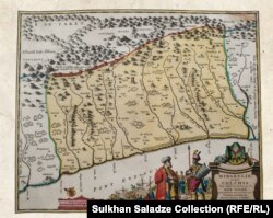 სულხან სალაძის კოლექციაშია პიტერ ვან დერ აას მიერ გამოცემული სამეგრელოს რუკის 1713 წლით დათარიღებული ვარიანტი. როგორც სულხანი ჰყვება, ეს რუკა იტალიელი მისიონერების მიერ (მისივე სიტყვებით, დღემდე კამათობენ, ვინ არის რუკის თავდაპირველი ავტორი - კრისტოფორო დე კასტელი თუ არქანჯელო ლამბერტი) არის შექმნილი და შემდგომ ვან დერ აას მიერ ხელახლაა გამოცემული. ფერადი რუკის ამ ვერსიის სულ 200 ეგზემპლარი დაიბეჭდა. მასზე დატანილია დასახლებული პუნქტები, ქალაქები, სოფლები, ციხესიმაგრეები, მთები, მდინარეები. ჩანს ძველი სამყაროს ისტორიის როლი და გავლენაც. რუკას აწერია ფრანგულად სამეგრელო - Mingrelie, აწერია კოლხეთი, ხოლო ჩარჩოში ოქროს საწმისია გამოსახული.