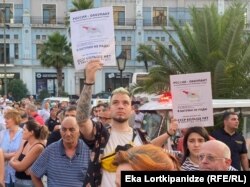 "Русский корабль, иди на...й", - მოქალაქეთა ნაწილს ამ შინაარსის პლაკატები უჭირავს ხელში.