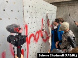 სპეცრაზმელები პარლამენტის ეზოდან მას შემდეგ გამოცვივდნენ, რაც დემონსტრანტების ნაწილმა შენობის წინ აღმართული ლითონის წინაღობის ფილა ამოჭრა.