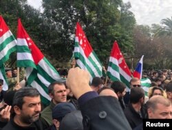 ვიდეო 15 ნოემბერს სოხუმში, ე.წ. პარლამენტის შენობასთანაა გადაღებული, სადაც რამდენიმე ათასი დემონსტრანტი შეიკრიბა.