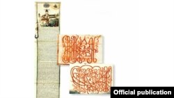 ალბომი, რომელიც საქართველოს ხელნაწერთა ეროვნული ცენტრის ისტორიული საბუთების კოლექციის მიხედვითაა შედგენილი, გამოიცა უზენაეს სასამართლოში გახსნილი გამოფენის ფარგლებში. მზია სურგულაძეს, ცენტრის წყაროთმცოდნეობისა და დიპლომატიკის დეპარტამენტის ხელმძღვანელსა და ალბომის შემდგენელს, გამოფენის ერთ-ერთ ექსპონატთან მივყავართ: