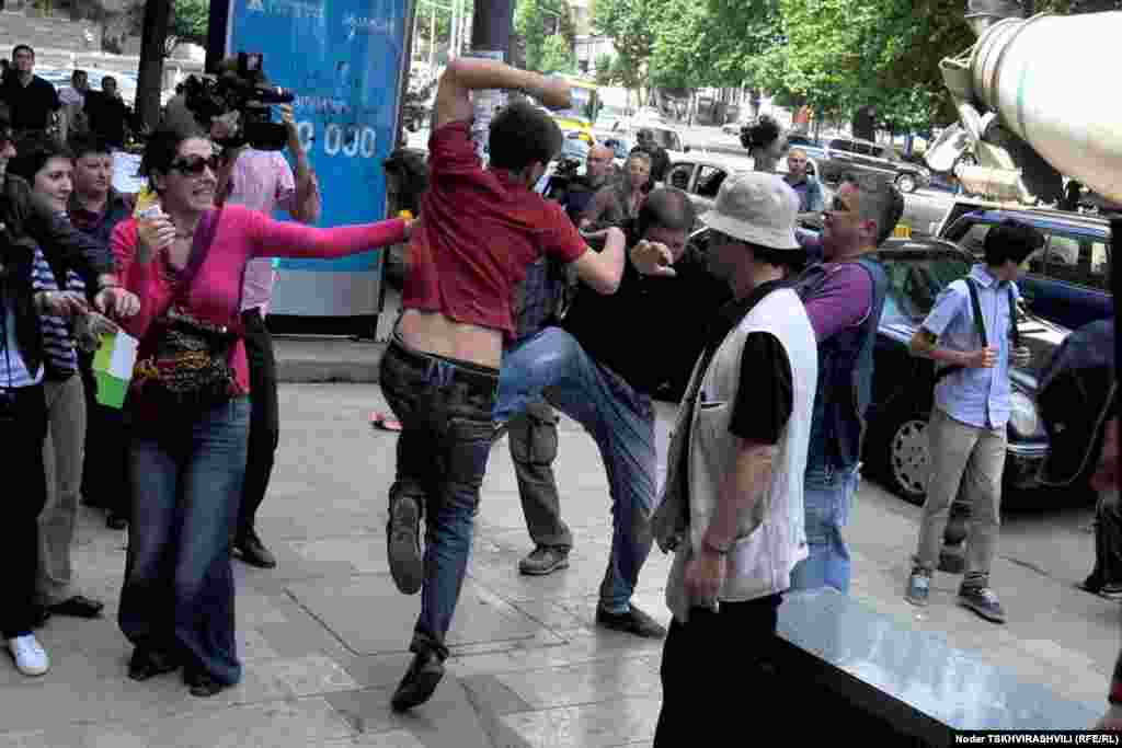 ფიზიკური დაპირისპირება მოხდა ჰომოფობიის წინააღმდეგ ბრძოლის საერთაშორისო დღისადმი მიძღვნილ აქციაზე, რომლის მონაწილეები სექსუალური უმცირესობების მიმართ სიძულვილს აპროტესტებდნენ.