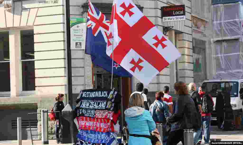 ახალი ზელანდია - საქართველო. კარდიფის ქუჩებში დღეს ამ ორი ქვეყნის დროშები მეფობს.
