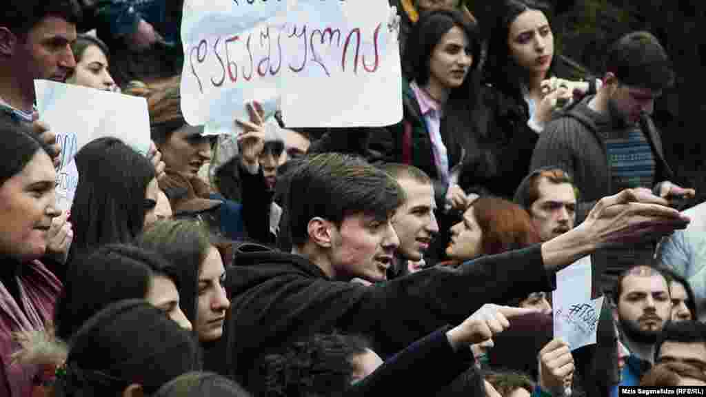 უნივერსიტეტის რექტორი ვლადიმერ პაპავა სტუდენტების აქციის დროს