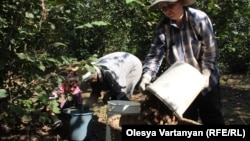 „თქვეს, რომ თხილის ავადმყოფობა არისო. მეც ჩემს თხილს შევამჩნიე. იცით, როგორია? აი, თოვლივით ადევს, თეთრი ლაქაა. არ შემიწამლია. უცბად გაჩნდა და ვერ მოვახერხე“, - უთხრა რადიო თავისუფლებას სოფელ აბასთუმანში მცხოვრებმა მაია ბუკიამ.