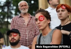 აქციის მონაწილეები დგანან თვალაკრულნიც, ამით ისინი თანადგომას გამოხატავენ დაშავებული აქციის მონაწილეების მიმართ და ასევე რუსულ ოკუპაციასაც აპროტესტებენ.